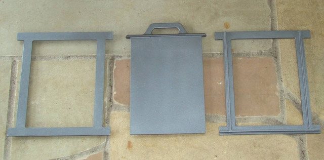 - Einbau einer Klappe in einen Kamineinsatz. Dazu wird das Tor im Abstand von 1 Meter vom Heizgerät montiert, was eine einfache Bedienung gewährleistet.