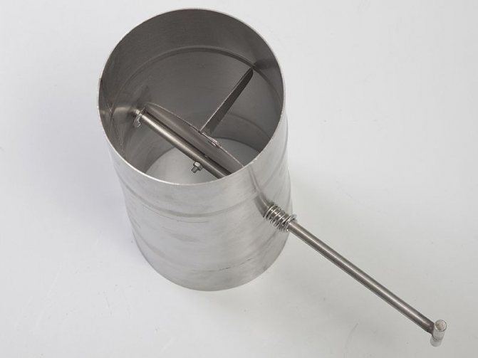 Die Herstellung eines Drehschieberventils erfordert mehr Werkzeug und Zeit. Am häufigsten wird diese Art von Tor für einen Metallkamin für moderne Kamine und freistehende Metallöfen verwendet.