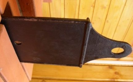 - In die Rahmenlöcher wird eine Achse eingesetzt, an der der Dämpfer montiert wird. Der zweite Teil des Metallstücks wird zum Einstellknopf.