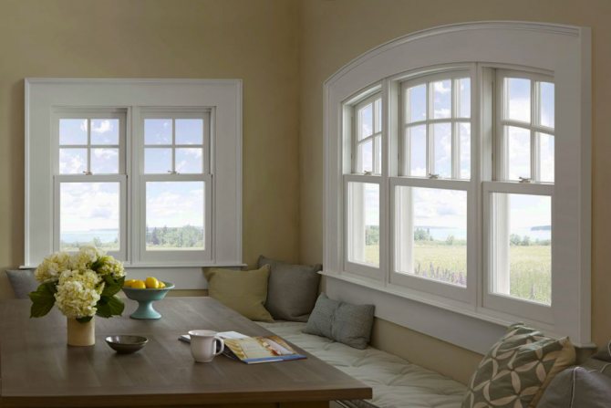 Il est facile de deviner qu'aux fenêtres verticales, le châssis ne s'ouvre pas, mais monte et descend. Cette conception est bonne en ce sens qu'elle ne forme pas de zones aveugles près de l'ouverture où les meubles ne peuvent pas être placés. Les rideaux, les stores et même les pots de fleurs posés sur le rebord de la fenêtre n'interféreront pas avec l'ouverture du châssis. Et bien sûr, la sécurité est un gros plus. Un petit enfant ne peut pas se permettre d'ouvrir une telle fenêtre.