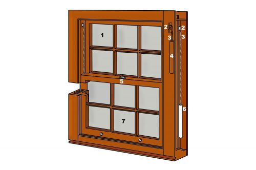 La fenêtre anglaise a deux ouvrants vitrés qui coulissent dans les cadres, soutenus par des chariots. Une ou les deux parties peuvent se déplacer vers le haut et vers le bas, se chevauchant. Pour que les volets se déplacent en douceur, des poids ou des blocs à ressort y ont été préalablement installés. Mais dans de nombreuses fenêtres modernes, ils sont remplacés par des contrepoids en spirale, qui sont montés dans un canal en aluminium. Dans ce cas, le vantail surélevé est solidement fixé et ne peut pas tomber accidentellement. Le mécanisme ne nécessite aucun effort, il est donc sûr de dire que les fenêtres anglaises sont faciles à soulever.