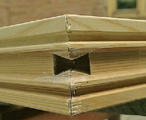 - lors de l'assemblage du cadre, ses éléments sont connectés selon le schéma épine-rainure, par conséquent, des rainures doivent être sélectionnées aux extrémités. Pour une plus grande résistance de la connexion, les éléments de cadre peuvent être percés au niveau du joint et une pointe en bois peut être insérée dans le trou résultant, après avoir préalablement graissé le trou avec de la colle;
