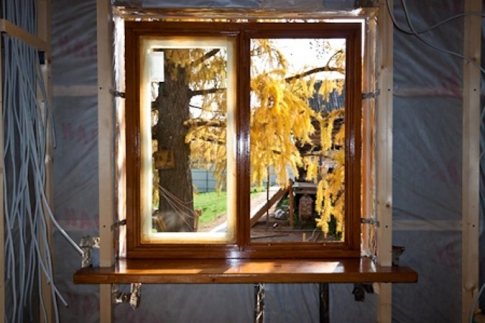 Le bois lamellé-collé est bon car il ne se prête pratiquement pas à la déformation. Le cadre fait de ce matériau ne changera pas de forme même en cas d'humidité élevée.Le cadre de la fenêtre peut être composé de planches de 50x150 mm et de barres de 50x50 mm. Toutes les structures en bois sont traitées avec un antiseptique. Cela évite la pourriture.