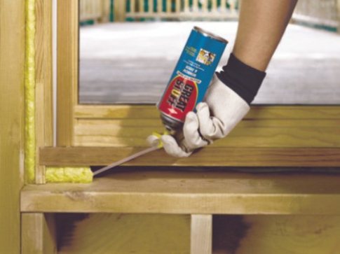 L'espace libre autour du périmètre de la fenêtre est rempli de mousse de polyuréthane.