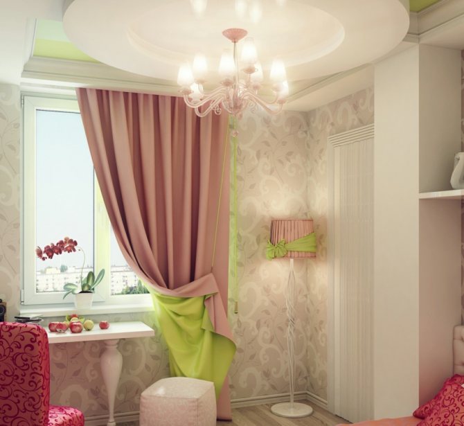 Pour éviter la fusion visuelle des rideaux avec les murs, la toile doit différer d'eux par plusieurs tons de couleur.