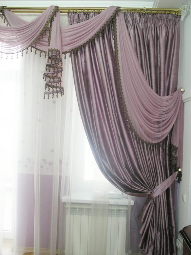 - lorsque le meuble est situé à proximité, vous pouvez magnifiquement assembler le rideau par le côté à l'aide d'un pick-up décoratif;