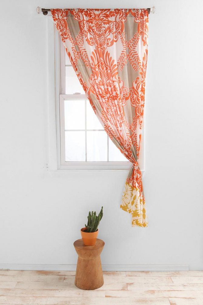 - Le risque d'incendie est réduit. Des rideaux ordinaires sous l'influence du vent peuvent flotter au-dessus d'un poêle allumé et attraper la flamme. Avec des rideaux asymétriques, cette situation est complètement exclue.