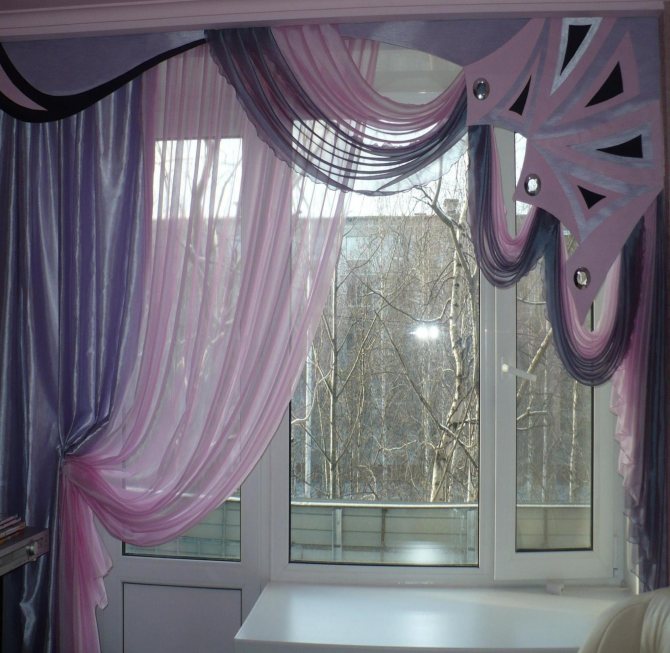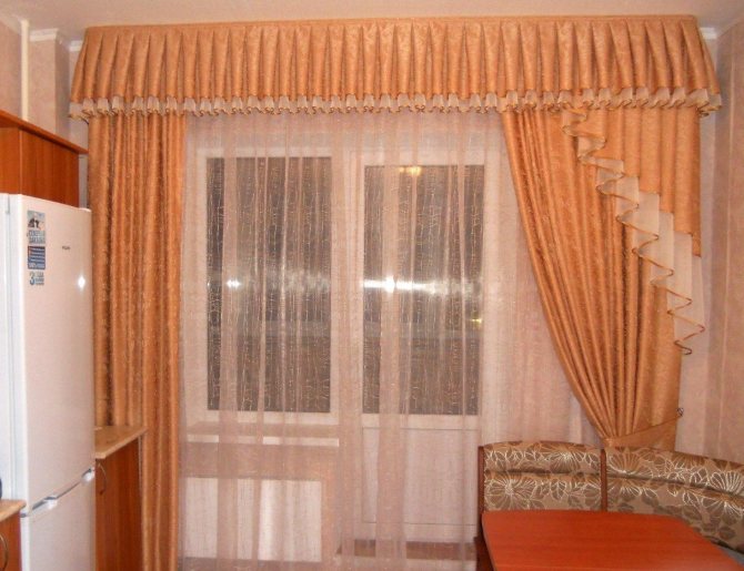 Si la fenêtre de la cuisine est adjacente à la porte de la loggia ou du balcon, vous pouvez acheter des rideaux asymétriques d'un côté, dans lesquels l'un est plus long et l'autre plus court. Élégant, et jusqu'à présent rarement trouvé chez quiconque.