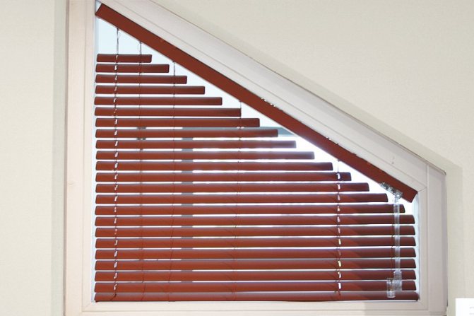 Malgré le fait que de nombreuses personnes associent les stores à des locaux administratifs, pour les maisons aux fenêtres non standard, ils peuvent être un salut contre le soleil et les regards indiscrets. Pour leur fabrication, du bois, du plastique, de l'aluminium et du tissu sont utilisés. Les stores pour fenêtres non standard peuvent être constitués de bandes séparées (lamelles) placées verticalement ou horizontalement. Selon la forme de la fenêtre, les lamelles sont fixées dans l'ordre croissant ou décroissant de leur longueur. Le guide de store vertical peut être facilement fixé à un angle par rapport à la surface du sol. Les stores horizontaux peuvent être fixés à la fois au cadre de la fenêtre et sous le plafond.,