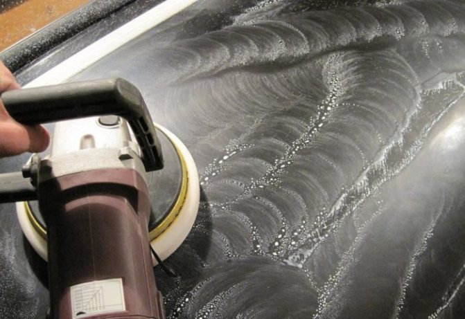 Le meulage peut être effectué manuellement sans utiliser d'outils électriques. Mais c'est un processus très laborieux. Le travail se fait avec du papier de verre imperméable. Tout d'abord, utilisez du papier de verre grossier, puis finement. La surface du verre est mouillée avec de l'eau pendant de tels travaux.