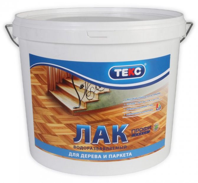 Les vernis acrylique et acrylique-uréthane sont les plus sûrs pour la santé. Ils sont inodores, résistants au feu, perméables à la vapeur et dilués avec de l'eau si nécessaire. Le seul inconvénient est le faible degré de résistance du film, cependant, cet inconvénient n'est pas important pour le traitement des murs à partir de la doublure du balcon. Le vernis acrylique d'intérieur universel Tex est un exemple de produit.