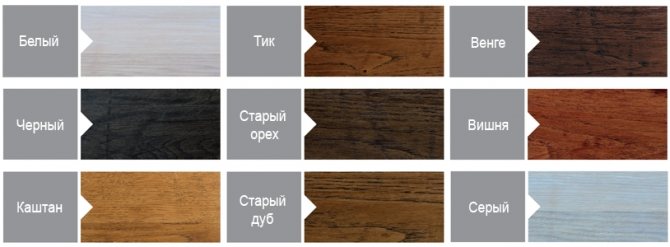 Le choix des solutions de protection est excellent, si vous le souhaitez, vous pouvez choisir un mélange qui servira à la fois de revêtement sol, antiseptique et décoratif. Un exemple est Senezh Aquadecor, un antiseptique à base d'acrylate d'alkyde. Il protège contre les moisissures, l'humidité, les insectes, les rayons ultraviolets, tout en "respirant" et forme un film solide. Il est facile de choisir la teinte d'intérêt dans la palette: en plus des tons boisés traditionnels, une version incolore est présentée, ainsi que du bleu "Lagoon", rouge vif "Rowan", canari "Oregon", etc.