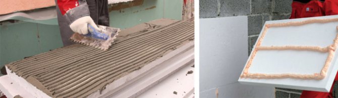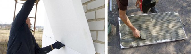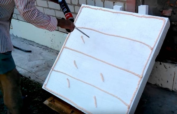 Le mélange fini peut être appliqué à la fois sur la mousse et sur le mur. Les plaques sont collées de bas en haut.