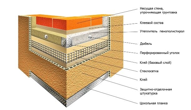 Parmi les inconvénients de la mousse, il convient de l'appeler une petite résistance - elle se brise facilement et même un petit coup peut laisser une bosse sur sa surface. Pour cette raison, il doit être protégé des dommages mécaniques - traditionnellement, des mélanges de plâtre sont utilisés pour cela. Ils protègent également le matériau des effets des rayons ultraviolets.