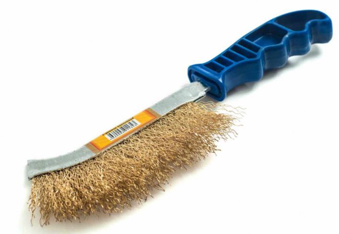 - Brosse métallique... Il est utilisé pour nettoyer la surface et éliminer la rouille et les vieux résidus de peinture. Au lieu d'un appareil manuel, vous pouvez utiliser un outil électrique - une perceuse ou une meuleuse avec une brosse métallique spéciale;