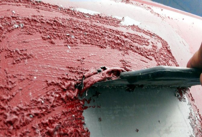 - La composition est appliquée sur la surface... Le travail se fait à la spatule ou au pinceau. Le mastic est étalé en couche épaisse sans espaces pour couvrir toute la base sans espaces;