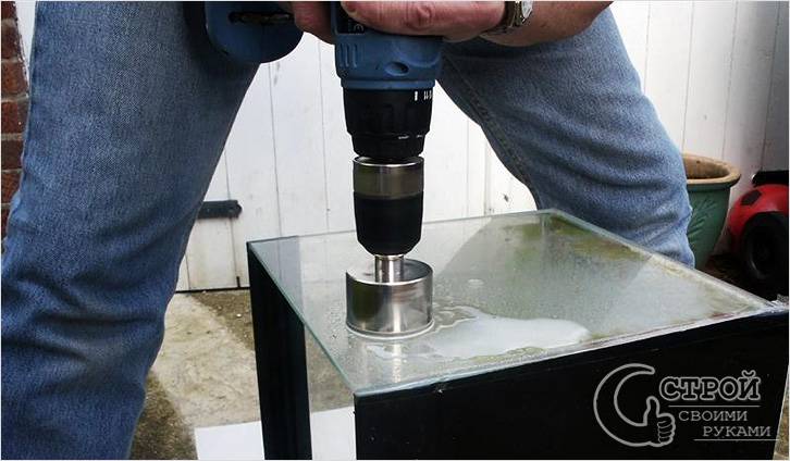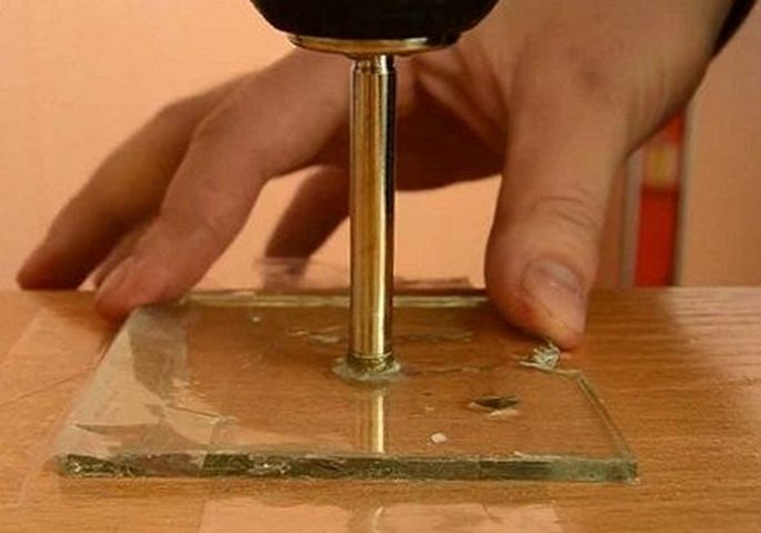- Le processus de forage doit être divisé en étapes, entre lesquelles il doit y avoir un intervalle de temps d'au moins 2-3 minutes. Ceci est fait pour permettre au verre de refroidir. N'utilisez pas d'eau pour abaisser la température. Et la perceuse, au contraire, sera correctement immergée dans l'eau pour le refroidissement (afin qu'il n'y ait pas de surchauffe et de fusion).
