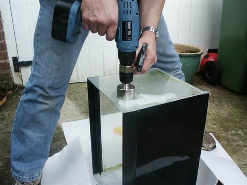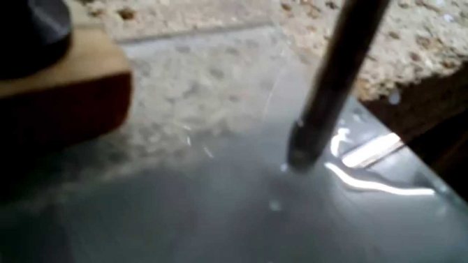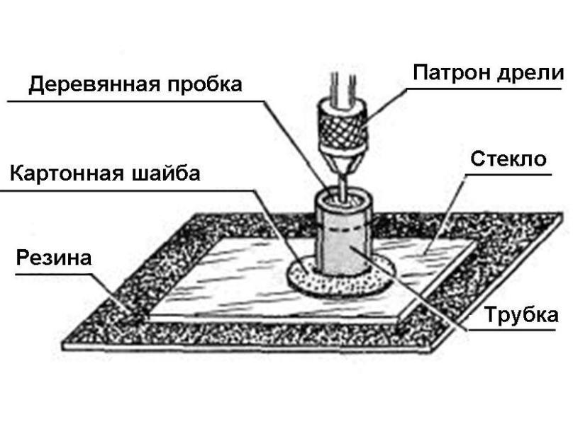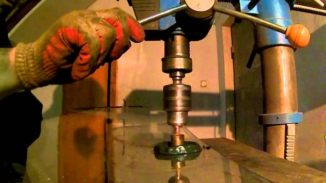 Pour rendre le processus de forage plus efficace et moins de temps, il est recommandé de pré-fabriquer une perceuse maison basée sur un «diamant» (rouleau de coupe) pris à partir d'un coupe-verre standard.