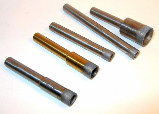 - "Cylindre". En fait, il s'agit d'un cylindre ordinaire, dont une arête de coupe est diamantée. Ils sont utilisés uniquement avec un refroidissement forcé.