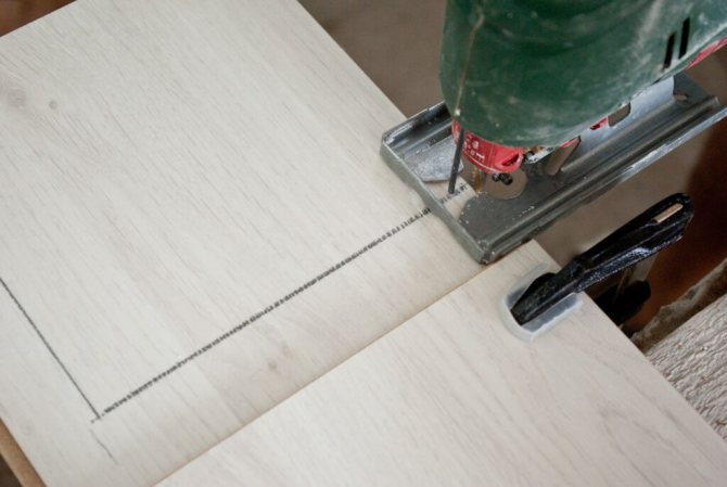 L'utilisation d'une scie sauteuse électrique est une méthode rapide mais pas une bonne méthode. Il est peu probable qu'il soit possible d'obtenir une coupe très uniforme avec son aide, des copeaux apparaissent également souvent le long du bord du panneau, grâce à cela, il est préférable d'abandonner cette option, en privilégiant la même meuleuse d'angle. L'utilisation de cet outil fournira une coupe uniforme, donc seulement en raison de révolutions élevées, le panneau commence à émettre une odeur désagréable et des substances toxiques.