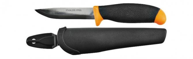 Cutter en plastique... Vendu dans n'importe quelle quincaillerie. Avec son aide, vous pouvez effectuer une coupe absolument uniforme sur le panneau en PVC sans trop d'effort. Le seul inconvénient est qu'il ne coupe qu'en ligne droite, vous ne pourrez donc pas faire de coupes arrondies. Si vous le souhaitez, le couteau peut être conçu indépendamment - à partir d'une bande de métal d'environ 1 cm de large et 2 mm d'épaisseur. Un côté devra être affûté à un angle de 45 degrés, enveloppez la poignée avec du ruban électrique afin de ne pas vous couper les doigts pendant le fonctionnement.