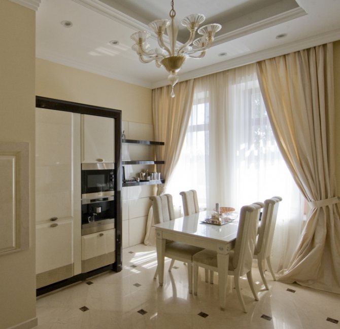 Lors de l'achat de rideaux, une attention particulière est également portée à l'ombre du tissu. Il vaut mieux que la matière soit dense et légère, car elle chauffe moins, mais retient les rayons du soleil. Si vous souhaitez rendre la pièce élégante en parallèle, vous devez choisir un ensemble de rideaux en tulle.