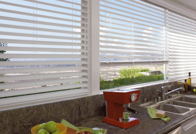 Les stores peuvent même être constitués de plaques réfléchissantes spéciales qui, lorsqu'elles sont installées à un angle spécial, repoussent parfaitement les rayons du soleil. L'inconvénient des stores intérieurs est la difficulté de nettoyage - la poussière s'accumule sur les plaques et il est assez fastidieux de les nettoyer.