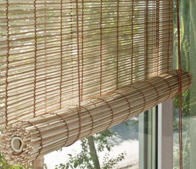 Les stores en bambou sont verticaux et horizontaux, ils peuvent avoir différentes couleurs et types d'exécution. Ils s'intègrent parfaitement dans de nombreux styles, sont équipés de la possibilité de faire pivoter les lamelles et sont assez économiques. L'inconvénient est la nécessité d'un nettoyage humide fréquent.
