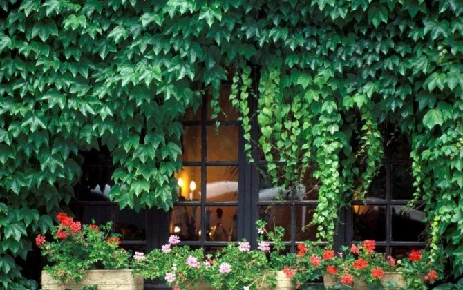 Il est préférable d'utiliser des raisins sauvages, des clématites, des glycines, du lierre et d'autres plantes pour les fenêtres, qui sont généralement situées près des belvédères, des clôtures, des arches. Si vous le souhaitez, vous pouvez ombrager tout le balcon ou plusieurs fenêtres de la maison avec eux.