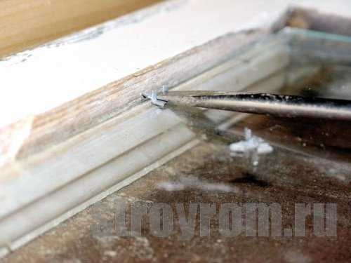 Le bourrelet de vitrage est cloué de la même manière que dans le cas de la pose de verre, vous pouvez utiliser les mêmes parcloses (qui étaient auparavant démontées) et les mêmes clous.