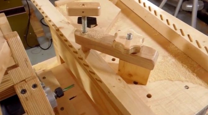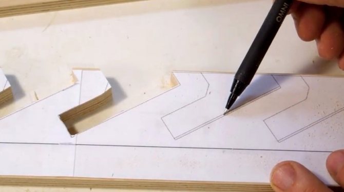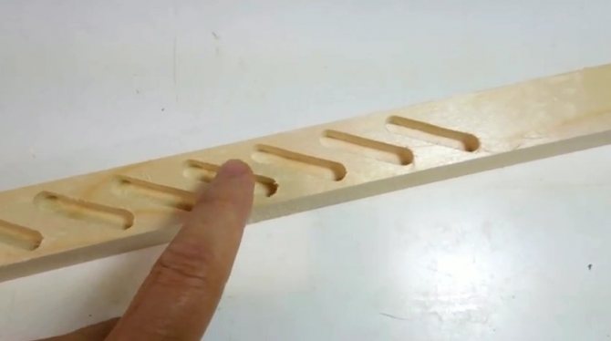 Sur la corniche inférieure, un axe longitudinal est dessiné et, en reculant de 10 à 15 cm des deux extrémités, un trou est fait de chaque côté - de sorte qu'un cordon puisse être passé à travers eux. Sur la face avant de la corniche, les trous sont fraisés - ils sont légèrement élargis en profondeur de 0,5 cm afin de noyer ensuite le nœud de corde.