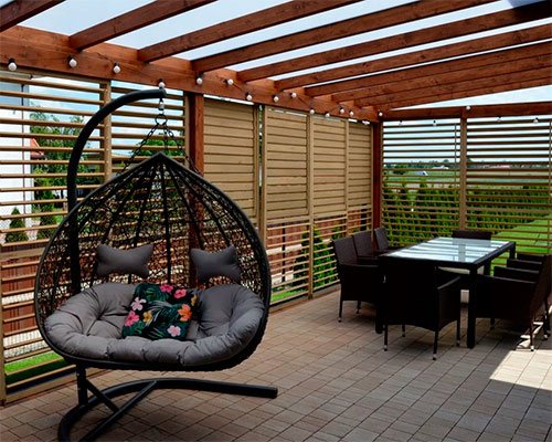 Stores - sont des lattes (lamelles) placées horizontalement ou verticalement sur les ouvertures de fenêtre, qui sont interconnectées et sont conçues pour protéger du soleil et des regards intrusifs des voisins, et ont également une fonction décorative. N'est-ce pas une solution de gazebo?