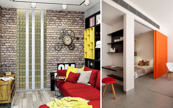 Le remplacement des murs vierges par des cloisons mobiles est, semble-t-il, la solution la plus simple et la moins coûteuse, mais malheureusement pas toujours possible. Une cloison coulissante est bien adaptée pour séparer la chambre du salon ou l'espace de vie de la cuisine. Lorsqu'il est nécessaire de prendre sa retraite, les portes sont fermées et vous obtenez deux espaces isolés séparés. Des portes entrouvertes et entièrement ouvertes permettront à la lumière et à l'air frais d'entrer dans une pièce sans fenêtres.