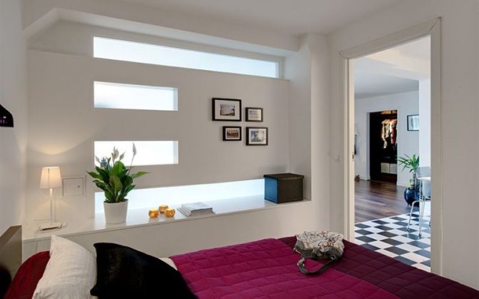 Fenêtre sur la pièce voisine. Dans ce cas, la lumière de la pièce adjacente entrera également dans la chambre, mais par une ouverture plus petite. Vous pouvez l'organiser comme suit: