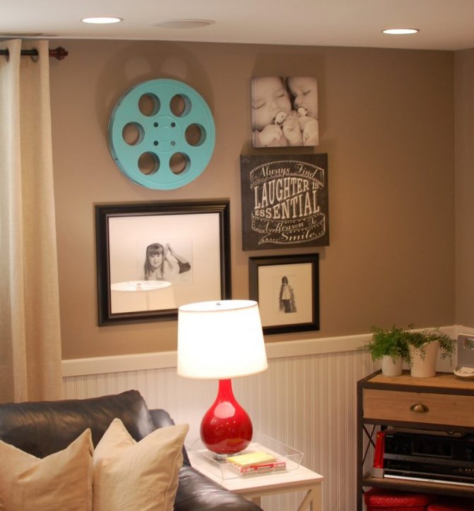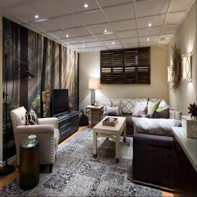 Des sources lumineuses supplémentaires doivent être utilisées au maximum. Dans le cours, allez aquarium éclairé, cheminée, bougies et guirlandes... Une peinture vivante, un objet d'art intéressant, des meubles de forme inhabituelle peuvent devenir un hareng rouge, un point focal qui attirera l'œil, l'éloignant ainsi de l'imperfection de l'espace.