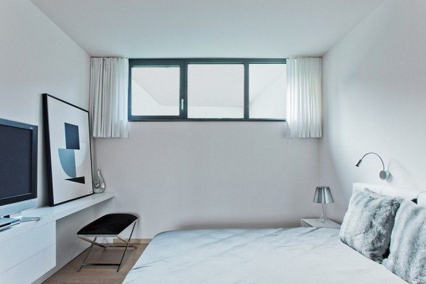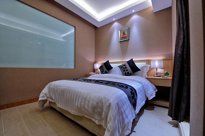 Sur cette base, la décoration intérieure d'une chambre sans fenêtres doit être aussi légère que possible. Le blanc est la base des fondations, il élargit visuellement l'espace, reflète parfaitement la lumière artificielle. Le beige est une teinte de base chaude qui aidera à créer une atmosphère chaleureuse dans la chambre à coucher. Le gris est un ton de base froid, si vous le choisissez pour une chambre sans ouverture de fenêtre, adoucissez-le avec des lampes à spectre chaud.