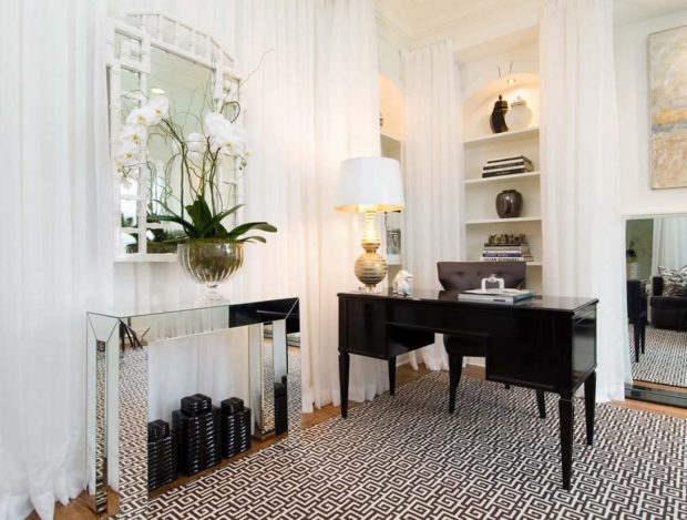 - Surfaces brillantes, en verre, miroir. Tous sont réfléchissants et ajoutent de l'air.