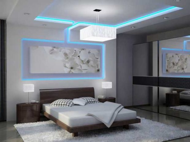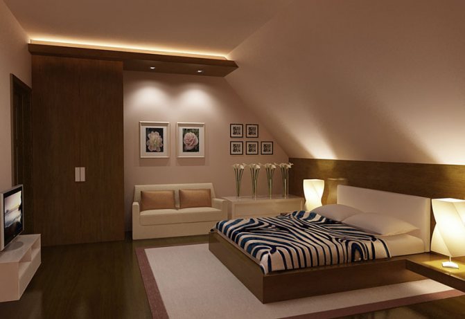 S'il y a une armoire dans la pièce, elle peut être garnie d'un ruban à diode flexible, ce qui créera en outre un effet décoratif et rendra visuellement le meuble plus léger.