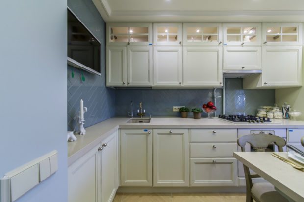 L'abondance d'objets en verre crée une sensation de flottement, soulage l'espace de l'encombrement inutile. En outre, les surfaces en verre ont tendance à refléter la lumière, à briller magnifiquement, ce qui améliore le niveau d'éclairage. Les verres peuvent être transparents ou semi-mats, monochromes et avec un motif, une gravure.