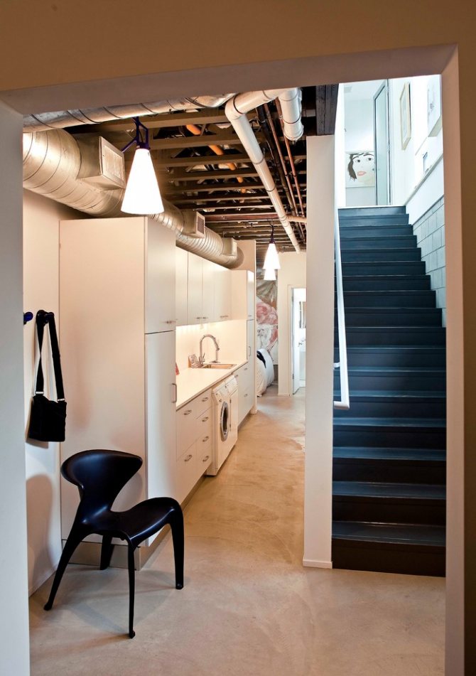 Pour que l'espace clos ne ressemble pas à un placard sombre, vous devez penser à la finition des murs, du sol et du plafond à l'avance: choisissez les couleurs, les matériaux et le type de matériaux de finition.