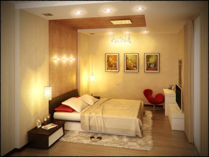 - en plus du lustre central, il vaut mieux utiliser système de projecteursqui éclairera uniformément toute la pièce. Certains experts conseillent de rendre le projecteur aussi invisible que possible afin de créer la sensation de lumière du soleil entrant dans la pièce;