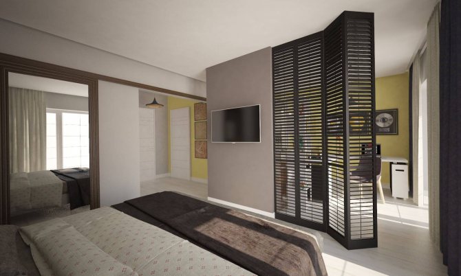 Le poids léger des portes en jalousie nous permet de fabriquer des écrans de différentes tailles, à l'aide desquels vous pouvez zoner la pièce à votre discrétion sans installer de murs et de cloisons supplémentaires, qui ont également de hautes qualités décoratives. Si vous ne savez toujours pas quelle porte aveugle choisir pour votre maison, regardez la photo.Peut-être qu'ils vous aideront dans la sélection et la conception de l'intérieur d'origine.