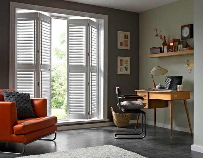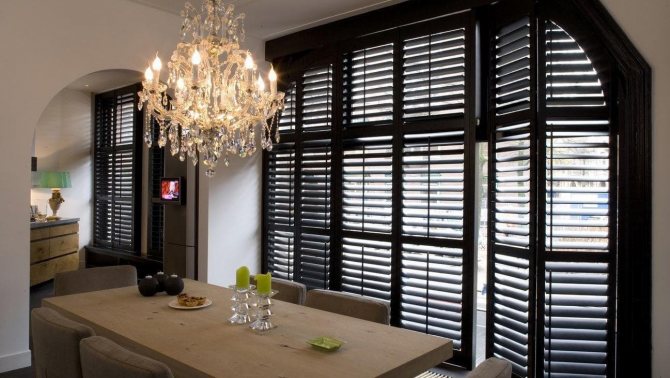 - une variété de matériaux de fabrication vous permet d'utiliser des portes en jalousie dans presque toutes les solutions stylistiques.