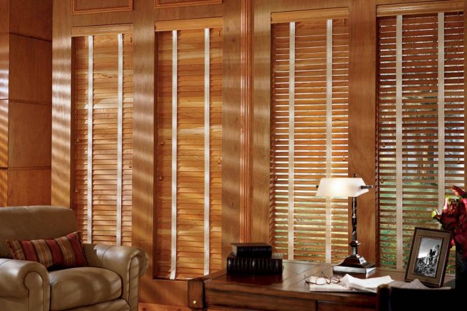 - Vertical, qui est une option de type bureau classique. Dans le même temps, les lamelles sont situées verticalement, elles peuvent être déplacées sur le côté à l'aide d'un mécanisme spécial.