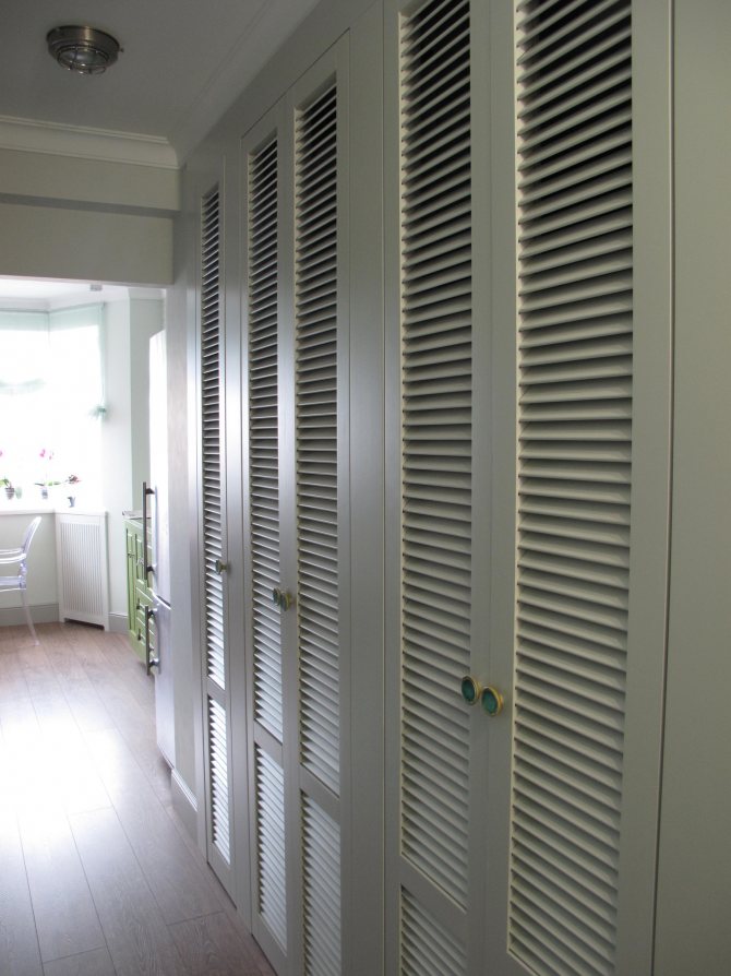 Les armoires à persiennes sur mesure seront un excellent élément de décoration. Grâce à un remplissage compétent, à la présence de barres, d'étagères, de tiroirs et d'autres éléments fonctionnels, il sera possible d'organiser correctement le stockage des objets et de les maintenir en excellent état.