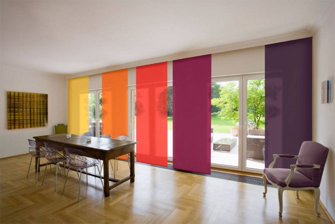 Le plus souvent, dans les appartements et les maisons, vous pouvez trouver des stores verticaux au lieu de portes. Cela est dû au fait que les lamelles de telles structures pendent librement, sans bloquer le passage d'une partie de la pièce à une autre.