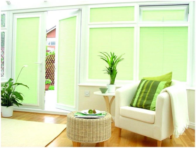 Mais pas dans tous les intérieurs, il y a des stores sur les portes. Beaucoup ont simplement peur de les installer, car les conceptions présentent une liste d'inconvénients:
