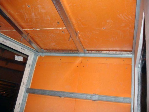 Il est temps de réfléchir à la manière de fixer les cloisons sèches à Penoplex. Il existe deux options: installation avec cadre et sans cadreLes cloisons sèches peuvent simplement être collées à la penoplex, et comme la hauteur des murs sur la loggia est petite, cette solution est tout à fait viable. Pour cela, convient la même composition adhésive avec laquelle l'isolant a été collé. Certes, lors de l'utilisation de penofol, cette option disparaît. La deuxième façon de monter une cloison sèche sur penoplex consiste à installer un cadre, en métal ou en bois. Des lattes de bois ordinaires ou un profil spécial pour cloisons sèches, qui peuvent être achetés dans presque toutes les quincailleries, feront l'affaire.