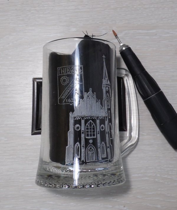 Bonjour à tous. Suite à la publication https://pikabu.ru/story/gravirovka_na_stekle_perenos_risunka. dans lequel je vais essayer de montrer comment je travaille avec les ombres. Après avoir tracé les contours du dessin, j'approfondis les lignes principales, ce qui aidera à les préserver lors du meulage initial et ultérieur. Pour lequel j'utilise un petit cône droit.