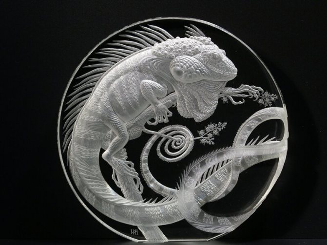 De plus, de nombreux artisans recommandent de travailler «humide». Autrement dit, une fois le dessin transféré sur du verre, il est humidifié avec de l'eau et seulement après cela, le graveur commence à dessiner des lignes.